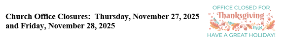 | Thursday 12:30 pm Senior Mission (1st Thursday) 6:00 pm Christian Education Ministry (2nd Thursday) |