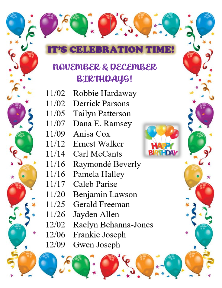 This month as we approach Thanksgiving, let us thank God for the many blessings that He has bestowed upon us through the years. Also, let us pray for those who don’t have any food or jobs at this time.